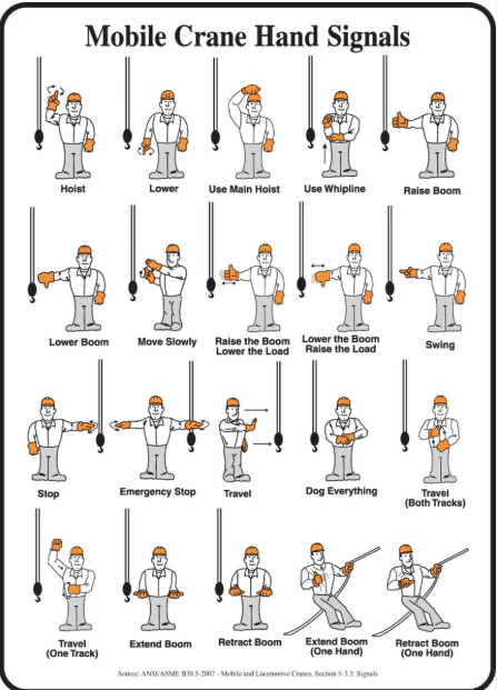 อ้างอิงมาตรฐาน: OSHA Subpart CC, OSHA 1926.1419/1422 (Signals), HSE LOLER/BS 7121